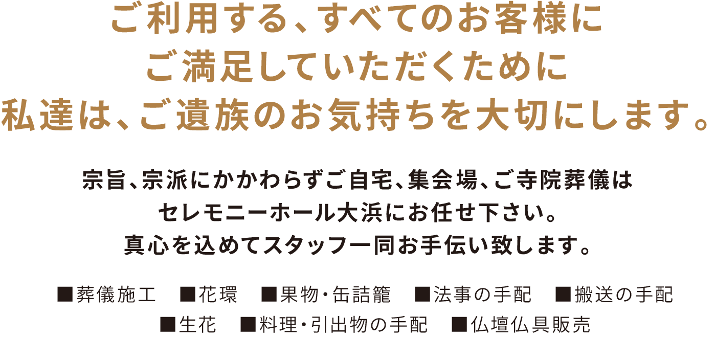 厳かに礼を尽くしてご葬儀の全てをお手伝いさせて頂きます。