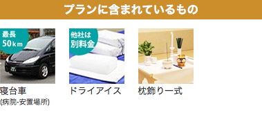 病院、またはお亡くなりになられた場所まで、寝台車でお迎えにあがります。お電話頂いてからお迎えにあがるまで最短30分程度(長くても1時間程度)で到着可能です。病院では長時間のご遺体安置はできませんので、「ご自宅」または「専用の安置所」まで搬送する必要があります。安置場所が決まっていない場合は、お迎えに伺った際にご案内し、即時決定搬送致します。
